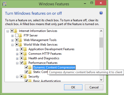 Next up you need to enable the Dynamic Content Compression to compress