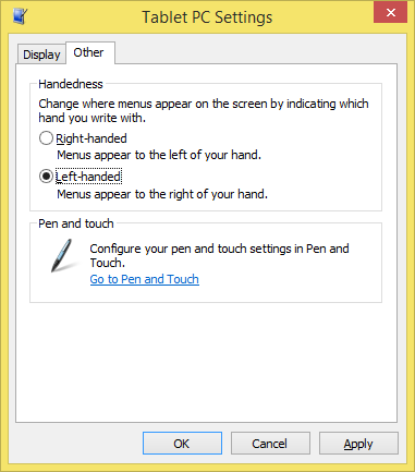 So, what is this. I can't remember what exactly I searched for, but the change you need to make is in Tablet PC Settings.