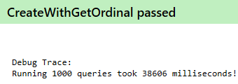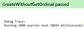 I recently had a discussion about the impact of SqlDataReader.GetOrdinal on execution of a SqlClient.SqlCommand. I then decided to run some code to measure the difference, because I think that's the only way to get a decent opinion. This is the code that I've used to run a certain query 1000 times:
